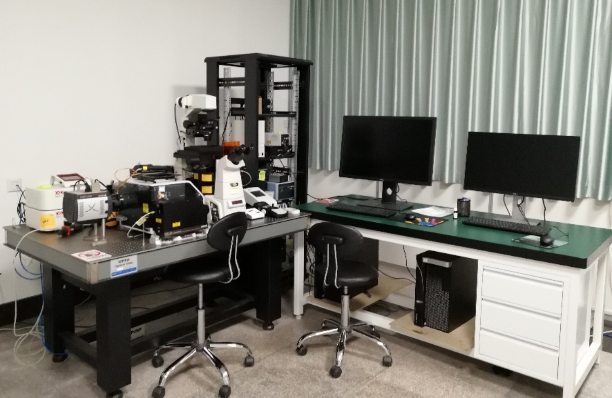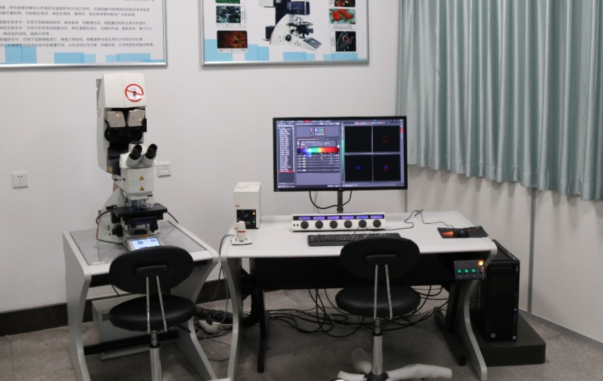 大型仪器共享平台配有生物激光和高速转盘式激光两台共聚焦显微镜。生物激光共聚焦显微镜为德国Leica公司生产,可以实现多色成像,3D成像,拼图,多点采集,动态追踪,FRAP,FRET等多种功能,此外还有图像处理,定量分析等工具。高速转盘式激光共聚焦显微镜为英国andor公司生产,此仪器的突出优点为:为细胞提供与培养箱一样的环境,并进行长时间快速活细胞成像;防止细胞热漂移;且配备了TIRF功能,追踪信号分子从细胞膜到细胞内部整体成像。